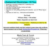 Interested candidates kindly send their updated resume along with certificate, photo & passport copy at Email: bhatiagirdhar99@gmail.com / WhatsApp : +91-8691878396