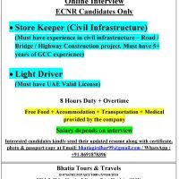 Interested candidates kindly send their updated resume along with certificate, photo & passport copy at Email: bhatiagirdhar99@gmail.com / WhatsApp : +91-8691878396