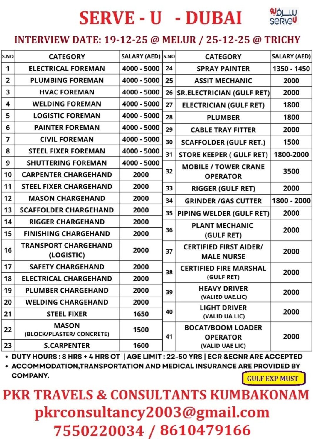 SEND ME UR CVS pkrconsultancy2003@gmail.com