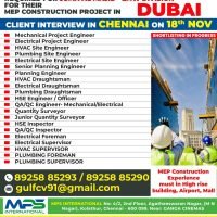 REQUIRED FOR JUMA AL MAJID – EMW DIVISION FOR THEIR MEP CONSTRUCTION PROJECT IN DUBAI CLIENT INTERVIEW IN CHENNAI ON 18.11.2025 Engineering/Construction/Fabrication/Real Estate Dubai 2025-11-13 Application deadline closed. Job Overview Date Posted 2025-11-13 Location Dubai Expiration date -- Job Description MEP Construction Experience must in High rise building, Airport, Mall 89258 85293 / 89258 85290 gulfcv91@gmail.com Share this post Facebook Twitter LinkedIn Pinterest Photos Related Jobs MULTI TECHNICIAN Engineering/Construction/Fabrication/Real Estate United Arab Emirates (UAE) leading construction company Engineering/Construction/Fabrication/Real Estate Dubai KANDAS INTERIOR DECOR Engineering/Construction/Fabrication/Real Estate Dubai MULTIPLE POSITION Engineering/Construction/Fabrication/Real Estate Qatar
