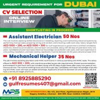 URGENT REQUIREMENT FOR DUBAI CV SELECTION ONLINE INTERVIEW Facility Management Dubai 2025-10-14 Application deadline closed. Job Overview Date Posted 2025-10-14 Location Dubai Expiration date -- Job Description ASSISTANT ELECTRICIAN MECHANICAL HELPERS Share this post Facebook Twitter LinkedIn Pinterest Photos Related Jobs URGENT HIRING – DIRECT CLIENT INTERVIEW SECURITY GUARD Facility Management Abu Dhabi WANTED FOR A LEADING MAINTENANCE COMPANY (SAUDI) DIRECT CLIENT INTERVIEW ON 31 JAN – CHENNAI Facility Management Saudi Arabia WANTED FOR A LEADING MAINTENANCE COMPANY (SAUDI) DIRECT CLIENT INTERVIEW ON 27 JAN – TRICHY Facility Management Saudi Arabia WANTED FOR A LEADING MAINTENANCE COMPANY (SAUDI) DIRECT CLIENT INTERVIEW ON 27 JAN – TRICHY Facility Management Saudi Arabia