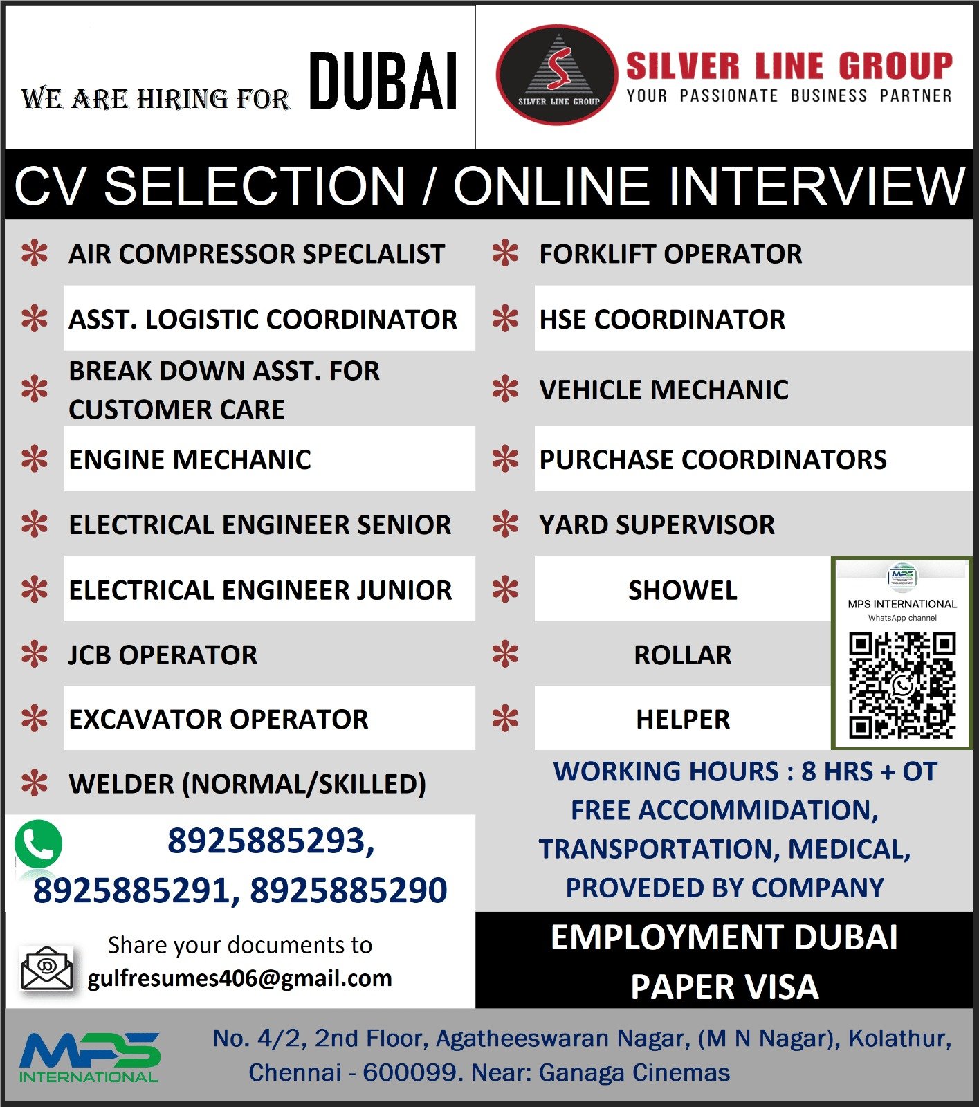 WE ARE HIRING FOR DUBAI SILVER LINE GROUP CV SELECTION ONLINE INTERVIEW Others Dubai 2025-09-29 Application ends: 2025-10-05 Apply Now Apply for this job Upload CV (doc, docx, pdf) You accept our Terms and Conditions and Privacy Policy Apply Job Job Overview Date Posted 2025-09-29 Location Dubai Expiration date -- Job Description RELEVANT EXPERIENCE Share this post Facebook Twitter LinkedIn Pinterest Photos Related Jobs URGENTLY REQUIRED FOR SUB STATON CONSTRUCTION WORK IN SAUDI ARABIA CLIENT INTERVIEW IN CHENNAI ON 10TH & 11TH OCT 2025 Others Saudi Arabia REQUIRED FOR REPUTED COMPANY OF DUBAI, UAE CLIENT INTERVIEW ON OCTOBER, 1st WEEK, 2025 / EMPLOYMENT VISA Others Dubai URGENTLY REQUIRED FOR SAUDI ARABIA ONLINE CLIENT INTERVIEW / SHORTLISTING IN PROGRESS Others Saudi Arabia WE ARE HIRING FOR RUSSIA CLIENT INTERVIEW IN CHENNAI ON 17.09.2025 Others Russia