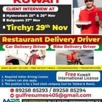 Basic Salary: 120 KWD + Free On Duty Meals + Accommodation + Transportation