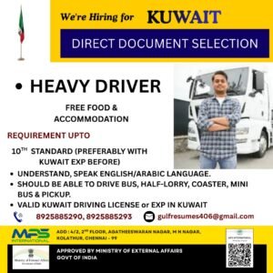 SHOULD BE ABLE TO DRIVE BUS, HALF-LORRY, COASTER, MINI BUS & PICKUP.