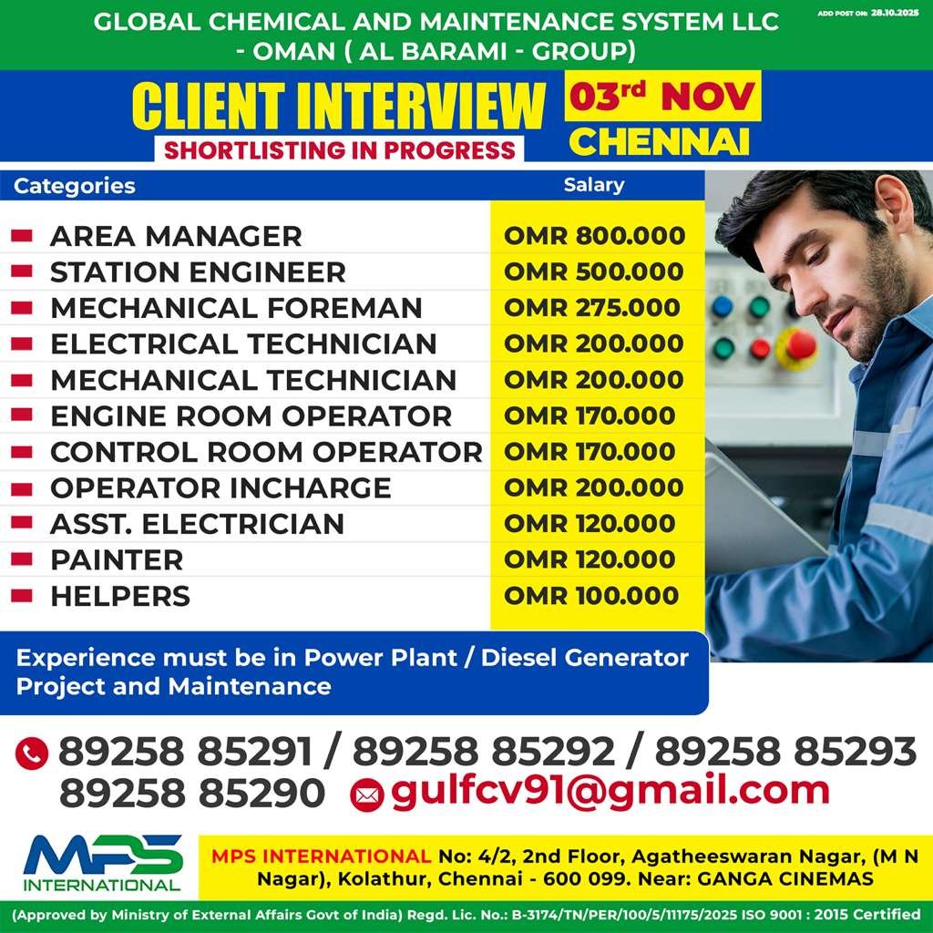 Experience must be in Power Plant / Diesel Generator Project and Maintenance