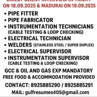 URGENT RECRUITMENT FOR SAUDI ARABIA CLIENT INTERVIEW IN TRICHY ON 18.09.2025 & MADURAI ON 19.09.2025 Oil/Gas/Power/Energy/Refinery/Petrochemicals Saudi Arabia 2025-09-18 Application deadline closed. Job Overview Date Posted 2025-09-18 Location Saudi Arabia Expiration date -- Job Description OIL AND GAS PROJECT GULF EXP MUST Share this post Facebook Twitter LinkedIn Pinterest Photos Related Jobs FREE RECRUITMENT – QATAR COUNTRY Oil/Gas/Power/Energy/Refinery/Petrochemicals Qatar PERMIT RECEIVER [LEAD WORKER] Oil/Gas/Power/Energy/Refinery/Petrochemicals Qatar SUPERVISOR-ROTATING EQUIPMENT Oil/Gas/Power/Energy/Refinery/Petrochemicals Qatar BA N2 SUPERVISOR / FOREMAN Oil/Gas/Power/Energy/Refinery/Petrochemicals Saudi Arabia