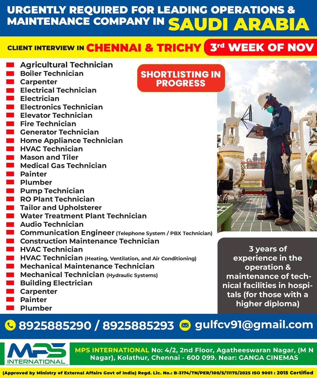 3 years of experience in the operation & maintenance of technical facilities in hospitals (for those with a higher diploma)
