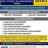 All Managerial profile must have B.E / B.Tech with Min. 12–15 Years Exp (Age up to 50 yrs) & Engineers with Min. 7–10 Yrs exp in the same field. (Sub-Station/ Oil & Gas). Candidates having exp in India from KPTL, L&T, PowerGrid, Adani Energy Solution, Sterling & Wilson, KEC. (Power Transmission & Distribution)