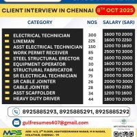 URGENTLY REQUIRED FOR SUB STATON CONSTRUCTION WORK IN SAUDI ARABIA CLIENT INTERVIEW IN CHENNAI ON 08.10.2025 Industrial Groups / Others Saudi Arabia 2025-10-06 Application deadline closed. Job Overview Date Posted 2025-10-06 Location Saudi Arabia Expiration date -- Job Description NEED EXP IN SUB STATON CONSTRUCTION WORK Share this post Facebook Twitter LinkedIn Pinterest Photos Related Jobs URGENT REQUIREMENT FOR SAUDI ARABIA Industrial Groups / Others Saudi Arabia Machine Operators Industrial Groups / Others Abu Dhabi ALUMINIUM FITTER / ALUMINIUM FABRICATOR / HELPER [Loading & Unloading] Industrial Groups / Others United Arab Emirates (UAE) GENERAL CLEANERS Industrial Groups / Others Dubai