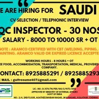WE ARE HIRING FOR SAUDI ARABIA CV SELECTION / TELEPHONIC INTERVIEW Oil/Gas/Power/Energy/Refinery/Petrochemicals Saudi Arabia 2025-10-06 Application deadline closed. Job Overview Date Posted 2025-10-06 Location Saudi Arabia Expiration date -- Job Description QC INSPECTOR ARAMCO CERTIFIED WITH CBT Share this post Facebook Twitter LinkedIn Pinterest Photos Related Jobs FREE RECRUITMENT QATAR – TIREMAN Oil/Gas/Power/Energy/Refinery/Petrochemicals Qatar FREE RECRUITMENT – QC ENGINEER / INSPECTOR Oil/Gas/Power/Energy/Refinery/Petrochemicals Saudi Arabia FREE RECRUITMENT – SAFETY OFFICER (QATAR) Oil/Gas/Power/Energy/Refinery/Petrochemicals Qatar FREE RECRUITMENT – SAFETY OFFICER Oil/Gas/Power/Energy/Refinery/Petrochemicals Saudi Arabia