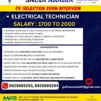 • Candidates should have 2–3 years of experience in ELECTRICAL BACKGROUND.