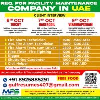 WANTED FOR A LEADING MAINTENANCE COMPANY (DUBAI) DIRECT CLIENT INTERVIEW ON 8 JAN – TRICHY Facility Management Dubai