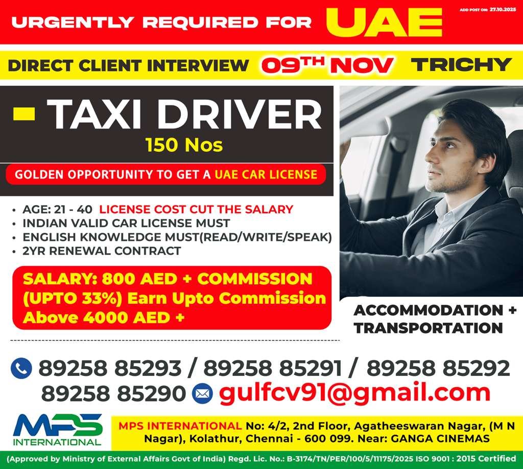 AGE: 21 – 40 LICENSE COST CUT THE SALARY