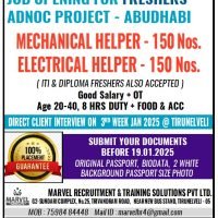 ADNOC PROJECT OIL AND GAS JOB MECHANICAL HELPER, ELECTRICAL HELPER