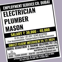 ELECTRICIAN, PLUMBER, MASON JOBS IN DUBAI