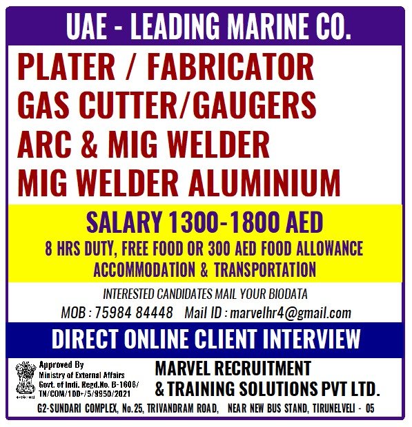 FABRICATOR GAS CUTTER WELDER UAE Engineering/Construction/Fabrication/Real Estate Dubai 2025-03-26 Application deadline closed. Job Overview Date Posted 2025-03-26 Location Dubai Expiration date -- Experience 2 Year Qualification Associate Degree Job Description FABRICATOR GAS CUTTER WELDER UAE Share this post Facebook Twitter LinkedIn Pinterest Photos Related Jobs ELECTRICIAN Engineering/Construction/Fabrication/Real Estate Dubai WANTED FOR A LEADING POWER PLANT | (DUBAI | ABUDHABI) – DIRECT CLIENT INTERVIEW ON 16th NOVEMBER – TRICHY Engineering/Construction/Fabrication/Real Estate United Arab Emirates (UAE) REQUIRED FOR JUMA AL MAJID – EMW DIVISION FOR THEIR MEP CONSTRUCTION PROJECT IN DUBAI CLIENT INTERVIEW IN CHENNAI ON 18.11.2025 Engineering/Construction/Fabrication/Real Estate Dubai CONSTRUCTION WORKER / MASON / FITTER Engineering/Construction/Fabrication/Real Estate Oman