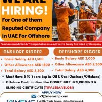 Join a reputed company in UAE for Onshore & Offshore Rigger positions!